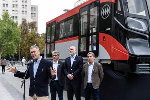 (251007) — SANTIAGO, 7 octubre, 2025 (Xinhua) — Imagen del 4 de octubre de 2025 del ministro de Transporte y Telecomunicaciones de Chile, Juan Carlos Muñoz (frente), participando durante la celebración por los 50 años del Metro de Santiago de Chile, en Santiago, capital de Chile. El Metro de Santiago de Chile, la red más extensa de Sudamérica, celebró 50 años desde el inicio de sus operaciones, período en el que ha contribuido a la equidad territorial de la capital chilena y mediante sus futuros proyectos se transformará en la red más extensa de Latinoamérica con aporte de la tecnología china, según el parecer de autoridades locales. (Xinhua/Jorge Villegas) (jv) (oa) (ah) (vf)