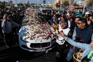 (250328) -- SANTIAGO, 28 marzo, 2025 (Xinhua) -- Floristas de la Pérgola de las Flores rinden homenaje al fallecido cantante de cumbia, Patricio Zúñiga, en Santiago, capital de Chile, el 28 de marzo de 2025. El presidente de Chile, Gabriel Boric, declaró el jueves día de duelo nacional por la muerte del icónico cantante de cumbia, Patricio Zúñiga, mejor conocido como "Tommy Rey", por "su aporte a la historia musical" del país. (Xinhua/Jorge Villegas) (jv) (jg) (da) (vf)