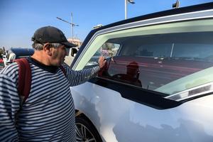 (250328) -- SANTIAGO, 28 marzo, 2025 (Xinhua) -- Una persona reacciona junto a la carroza fúnebre con el féretro del fallecido cantante de cumbia, Patricio Zúñiga, en Santiago, capital de Chile, el 28 de marzo de 2025. El presidente de Chile, Gabriel Boric, declaró el jueves día de duelo nacional por la muerte del icónico cantante de cumbia, Patricio Zúñiga, mejor conocido como "Tommy Rey", por "su aporte a la historia musical" del país. (Xinhua/Jorge Villegas) (jv) (jg) (da) (vf)