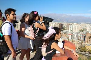 (260406) -- SANTIAGO, 6 abril, 2026 (Xinhua) -- Imagen del 5 de abril de 2026 de turistas visitando el Cerro Santa Lucía durante las vacaciones de Pascua, en Santiago, Chile. (Xinhua/Zhou Jiayi) (rtg) (vf)