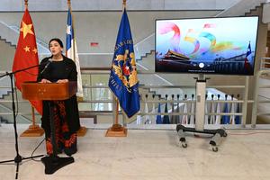 (260122) — VALPARAISO, 22 enero, 2026 (Xinhua) — Imagen del 20 de enero de 2026 de diputada Karol Cariola, pronunciando un discurso durante la inauguración de la exposición fotográfica «China y Chile: amistad en imágenes» con motivo de la conmemoración del 55 aniversario del establecimiento de relaciones diplomáticas entre China y Chile, en el Congreso Nacional de Chile, en la ciudad de Valparaíso, Chile. En el Congreso Nacional de Chile se montó una exposición fotográfica que recorre la vasta y fructífera amistad del país sudamericano con China que, según las mismas imágenes datan desde los albores de los años 50, esta unión se ha manifestado a través de la cultura, economía, política, ciencia y la vida cotidiana. (Xinhua/Jorge Villegas) (jv) (ah) (ra) (vf)