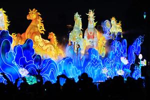 (260130) — GUANGZHOU, 30 enero, 2026 (Xinhua) — Imagen del 30 de enero de 2026 de un conjunto de linternas inspiradas en el caballo del zodíaco chino durante el espectáculo de linternas del Festival de la Primavera de Guangzhou 2026, en Guangzhou, en la provincia de Guangdong, en el sur de China. El evento comenzó el viernes en el parque Yuexiu en Guangzhou, con 85 grupos de exhibiciones de linternas distintivas repartidas por las diez principales áreas turísticas de todo el parque, y durará hasta el 8 de marzo. (Xinhua/Wang Ruiping) (oa) (ra) (vf)