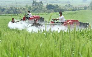 (250410) -- BEIJING, 10 abril, 2025 (Xinhua) -- Imagen del 9 de abril de 2025 de personas conduciendo máquinas rociadoras en un campo, en el distrito de Shuangliu, en la ciudad de Chengdu, en la provincia de Sichuan, en el suroeste de China. (Xinhua/Li Xiangyu) (rtg) (ra) (vf)