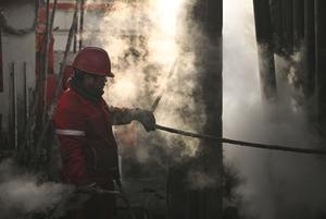 (250220) -- AKSU, 20 febrero, 2025 (Xinhua) -- Imagen del 19 de febrero de 2025 de un trabajador laborando en el "Shenditake 1", un pozo ultraprofundo, en el corazón del desierto de Taklimakan en la cuenca del Tarim, en la región autónoma uygur de Xinjiang, en el noroeste de China. La estatal petrolera Corporación Nacional de Petróleo de China anunció el jueves que completó la perforación del pozo vertical más profundo de Asia, que alcanzó una profundidad de 10.910 metros, en una zona desértica del noroeste del país. (Xinhua/Hu Huhu) (da) (ra) (vf)