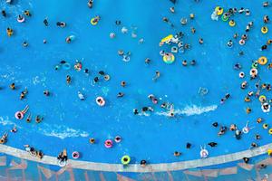 (250714) -- BEIJING, 14 julio, 2025 (Xinhua) -- Vista aérea tomada con un dron el 12 de julio de 2025 de visitantes disfrutando en el agua, en el Parque Acuático Fantawild, en la municipalidad de Tianjin, en el norte de China. Las altas temperaturas durante las vacaciones de verano han revitalizado la economía para refrescarse en todo el país. (Xinhua/Du Penghui) (rtg) (ah) (ce)