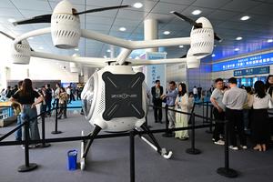 (250426) -- HEFEI, 26 abril, 2025 (Xinhua) -- Imagen del 26 de abril de 2025 de una aeronave exhibida en la 3ª Feria de Transformación de Logros de Innovación en Ciencia y Tecnología de China (Anhui), en Hefei, capital de la provincia de Anhui, en el este de China. Comenzando el sábado y cubriendo una superficie total de exposición de 20.000 metros cuadrados, la feria ha atraído a más de 2.000 empresas y cerca de 200 universidades. Se han establecido seis zonas de exposición para mostrar los últimos logros científicos y tecnológicos de todo el mundo. Diez eventos de emparejamiento de cooperación, incluyendo presentaciones itinerantes y actividades comerciales, también se celebrarán para promover la comercialización de proyectos científicos y tecnológicos. (Xinhua/Zhou Mu) (oa) (da)