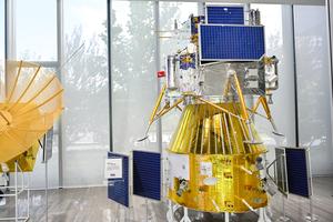 (250703) -- HEFEI, 3 julio, 2025 (Xinhua) -- Imagen del 30 de junio de 2025 de un modelo de la sonda lunar Chang'e-6 exhibida en el Laboratorio de Exploración del Espacio Profundo, en Hefei, en la provincia de Anhui, en el este de China. La ciudad ha logrado un progreso notable en múltiples sectores industriales del futuro, emergiendo como un sólido centro de rápido avance. (Xinhua/Zhang Cheng) (jg) (ah) (vf)