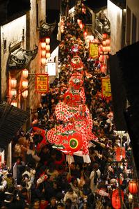 (250422) -- SHEXIAN, 22 abril, 2025 (Xinhua) -- Imagen del 31 de diciembre de 2024 de visitantes disfrutando de un espectáculo de linternas con forma de pez, en la aldea de Zhanqi del distrito de Shexian, en la ciudad de Huangshan, en la provincia de Anhui, en el este de China. Ubicado en el cruce de las montañas Huangshan y el río Xin'an, el distrito de Shexian, en la provincia de Anhui, en el este de China, ha conservado la esencia de la cultura y la arquitectura de estilo hui. (Xinhua/Shi Yalei) (oa) (ah) (ce)