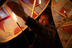 (250212) — SHEXIAN, 12 febrero, 2025 (Xinhua) — Imagen del 10 de febrero de 2025 de un aldeano encendiendo las velas dentro de las linternas con forma de pez, en la aldea de Wangmantian del poblado de Xitou, en el distrito de Shexian, en la ciudad de Huangshan, en la provincia de Anhui, en el este de China. Aldeanos locales tienen la tradición de elaborar linternas con forma de pez para orar por la cosecha y la buena fortuna y desfilar con ellas alegremente durante el Festival de las Linternas, que cae el día 15 del primer mes del calendario lunar chino, o el 12 de febrero este año. (Xinhua/Zhang Duan) (ah) (ra) (vf)
