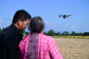 (251029) -- TONGCHENG, 29 octubre, 2025 (Xinhua) -- Imagen del 23 de octubre de 2025 de Dai Shuying (d) operando un dron de protección de plantas bajo la guía de su nieto, Wang Tiantian, en la aldea de Laomei del poblado de Xindu, en la ciudad de Tongcheng, en la provincia de Anhui, en el este de China. Dai Shuying, de 82 años de edad, vive con su hijo mayor y su nieto. Aunque actualmente no realiza muchas labores agrícolas, ocasionalmente utiliza un dron para ayudar a los agricultores a fumigar con pesticidas y fertilizantes, bajo la supervisión de su nieto Wang Tiantian. Acompañada de Wang, también promociona y vende productos agrícolas como arroz y aceite a través de transmisiones en vivo, y disfruta grabando videos con él. (Xinhua/Zhou Mu) (ah) (ra) (ce)
