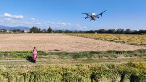 (251029) — TONGCHENG, 29 octubre, 2025 (Xinhua) — Vista aérea tomada con un dron el 23 de octubre de 2025 de Dai Shuying (frente) operando un dron de protección de plantas bajo la guía de su nieto, Wang Tiantian, en la aldea de Laomei del poblado de Xindu, en la ciudad de Tongcheng, en la provincia de Anhui, en el este de China. Dai Shuying, de 82 años de edad, vive con su hijo mayor y su nieto. Aunque actualmente no realiza muchas labores agrícolas, ocasionalmente utiliza un dron para ayudar a los agricultores a fumigar con pesticidas y fertilizantes, bajo la supervisión de su nieto Wang Tiantian. Acompañada de Wang, también promociona y vende productos agrícolas como arroz y aceite a través de transmisiones en vivo, y disfruta grabando videos con él. (Xinhua/Zhou Mu) (ah) (ra) (ce)