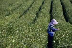 (260403) -- XUANCHENG, 3 abril, 2026 (Xinhua) -- Imagen del 2 de abril de 2026 de un trabajador recolectando hojas de té al pie de la montaña Jingting, en la ciudad de Xuancheng, en la provincia de Anhui, en el este de China. Como una principal zona de producción de té verde, la montaña está rodeada por más de 10.000 mu (aproximadamente 666,67 hectáreas) de jardines de té. (Xinhua/Zhang Duan) (rtg) (ra) (vf)