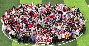 (251231) -- BEIJING, 31 diciembre, 2025 (Xinhua) -- Vista aérea tomada con un dron el 31 de diciembre de 2025 de estudiantes posando para una fotografía grupal en una escuela primaria, en Huai'an, en la provincia de Jiangsu, en el este de China. Varias actividades se llevan a cabo en toda China para celebrar el próximo año nuevo. (Xinhua/Zhao Qirui) (ah) (ra) (vf)