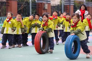(260101) -- BEIJING, 1 enero, 2026 (Xinhua) -- Imagen del 31 de diciembre de 2025 de estudiantes participando en una competencia de girar llantas en un jardín de niños, en el distrito de Wuxing de la ciudad de Huzhou, en la provincia de Zhejiang, en el este de China. Diversas actividades se llevaron a cabo en toda China para celebrar el Año Nuevo. (Xinhua/He Weiwei) (da) (vf)
