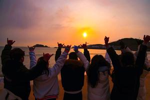(260101) -- BEIJING, 1 enero, 2026 (Xinhua) -- Turistas saludan el amanecer en una playa, en la ciudad de Weihai, en la provincia de Shandong, en el este de China, el 1 de enero de 2026. Personas a lo largo de China reciben la llegada de 2026 al amanecer. (Xinhua/Zhu Chunxiao) (da) (ra) (vf)