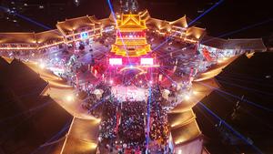 (260101) -- BEIJING, 1 enero, 2026 (Xinhua) -- Vista aérea tomada con un dron el 31 de diciembre de 2025 de personas asistiendo a un evento de celebración de Año Nuevo, en la ciudad de Zhangye, en la provincia de Gansu, en el noroeste de China. Diversas actividades se llevaron a cabo en todo el país para celebrar el Año Nuevo. (Xinhua/Cheng Lin) (jg) (ah) (vf)