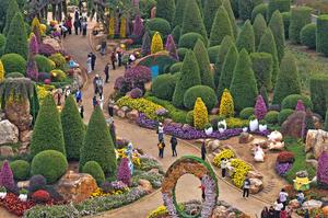 (260103) -- BEIJING, 3 enero, 2026 (Xinhua) -- Vista aérea tomada con un dron el 3 de enero de 2026 de turistas observando flores de crisantemo en un área escénica, en Nanning, en la región autónoma de la etnia zhuang de Guangxi, en el sur de China. Las personas participaron en diversas actividades de ocio durante las vacaciones de Día de Año Nuevo. (Xinhua/Zhou Hua) (jg) (oa) (ra) (ce)
