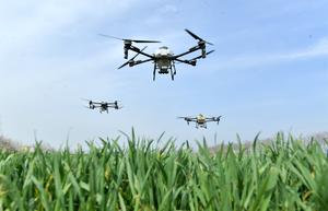 (250315) -- BEIJING, 15 marzo, 2025 (Xinhua) -- Imagen del 13 de marzo de 2025 de drones trabajando sobre un campo de trigo de una cooperativa agrícola, en el distrito de Xiayi, en la provincia de Henan, en el centro de China. Diversas tecnologías modernas están siendo usadas durante las labores agrícolas de arado de primavera en todo el país. (Xinhua/Miao Yucai) (jg) (da)