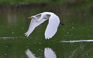 (250811) -- BEIJING, 11 agosto, 2025 (Xinhua) -- Imagen del 10 de agosto de 2025 de una garza volando sobre un río, en la ciudad de Tengzhou, en la provincia de Shandong, en el este de China. (Xinhua/Li Zhijun) (oa) (ah) (ce)