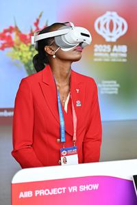 (250626) -- BEIJING, 26 junio, 2025 (Xinhua) -- Una invitada experimenta con gafas de realidad virtual en la 10ª Reunión Anual de la Junta de Gobernadores del Banco Asiático de Inversión en Infraestructura (BAII), en Beijing, capital de China, el 26 de junio de 2025. Bajo el lema "Conectar para el Desarrollo, Colaborar para la Prosperidad", y con la participación de más de 3.500 invitados de aproximadamente de 100 países y regiones, la 10ª Reunión Anual de la Junta de Gobernadores del BAII celebró su ceremonia inaugural el jueves en Beijing. (Xinhua/Li Xin) (jg) (da) (vf)