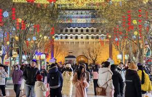 (251227) — BEIJING, 27 diciembre, 2025 (Xinhua) — Imagen del 26 de diciembre de 2025 de personas disfrutando de la vista nocturna en la calle peatonal Qianmen, en Beijing, capital de China. A medida que se acerca el Año Nuevo, la calle peatonal Qianmen, una emblemática calle comercial de Beijing, está decorada con diversos festones. (Xinhua/Li Xin) (oa) (da)