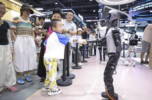 (250914) -- BEIJING, 14 septiembre, 2025 (Xinhua) -- Un niño interactúa con un robot humanoide durante la Feria Internacional de Comercio de Servicios de China (CIFTIS, por sus siglas en inglés) 2025, en el Parque Shougang, en Beijing, capital de China, el 14 de septiembre de 2025. La CIFTIS 2025 concluyó en Beijing el domingo. (Xinhua/Zou Duowei) (rtg) (ah)