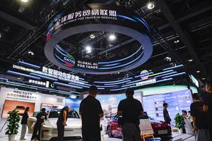 (250911) -- BEIJING, 11 septiembre, 2025 (Xinhua) -- Imagen del 10 de septiembre de 2025 del estand de la Alianza Global para el Comercio de Servicios de las exposiciones temáticas durante la Feria Internacional de Comercio de Servicios de China (CIFTIS, por sus siglas en inglés) 2025 en el Parque Shougang, en Beijing, capital de China. La CIFTIS 2025 abrió sus puertas el miércoles en Beijing bajo el tema "Abrazar tecnologías inteligentes, impulsar el comercio de servicios". La magnitud de la CIFTIS de este año es vasta, con la participación de 85 países y organizaciones internacionales, entre ellos Australia, Alemania y la Organización Mundial de la Propiedad Intelectual, y Australia ostenta por primera vez el título de País Invitado de Honor. (Xinhua/Xu Qin) (jg) (ah) (vf)