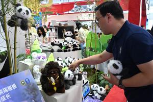(250912) -- BEIJING, 12 septiembre, 2025 (Xinhua) -- Un trabajador acomoda productos culturales y creativos con temática de panda exhibidos en la Feria Internacional de Comercio de Servicios de China (CIFTIS, por sus siglas en inglés) 2025, en Beijing, capital de China, el 12 de septiembre de 2025. La CIFTIS 2025 se lleva a cabo del 10 al 14 de septiembre en el Parque Shougang en Beijing. La feria de este año presenta una amplia gama de productos culturales y creativos, muy populares entre los visitantes. (Xinhua/Sui Shangjun) (rtg) (ra) (vf)
