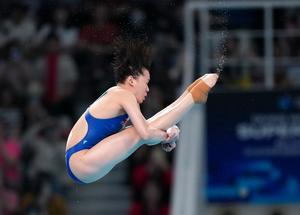 (250503) -- BEIJING, 3 mayo, 2025 (Xinhua) -- Quan Hongchan, de China, compite durante la final de plataforma de 10m femenina en la Súper Final de la Copa del Mundo de Clavados 2025 de World Aquatics, en Beijing, capital de China, el 3 de mayo de 2025. (Xinhua/Luo Yuan) (rtg) (da)