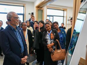 (251014) -- BEIJING, 14 octubre, 2025 (Xinhua) -- Representantes que se encuentran en Beijing para la Conferencia de Líderes Mundiales sobre la Mujer, aprenden sobre un dispositivo de asistencia psicológica basado en inteligencia artificial en un centro de servicios sociales para mujeres y niñas, en el distrito de Shunyi, en Beijing, capital de China, el 14 de octubre de 2025. (Xinhua/Yan Linyun) (oa) (ah) (vf)