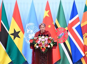 (251013) -- BEIJING, 13 octubre, 2025 (Xinhua) -- La vicesecretaria General de la Organización de las Naciones Unidas, Amina Mohammed, pronuncia un discurso durante la ceremonia de apertura de la Conferencia de Líderes Mundiales sobre la Mujer, en Beijing, capital de China, el 13 de octubre de 2025. (Xinhua/Shen Hong) (rtg) (ah) (vf)