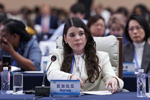 (251013) -- BEIJING, 13 octubre, 2025 (Xinhua) -- Camila Ortega Murillo, coordinadora de la Comisión Nacional de Economía Creativa y Naranja de Nicaragua, asiste a la reunión plenaria de la Conferencia de Líderes Mundiales sobre la Mujer, en Beijing, capital de China, el 13 de octubre de 2025. (Xinhua/Zhang Yuwei) (rtg) (ah) (ce)