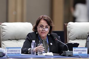 (251013) — BEIJING, 13 octubre, 2025 (Xinhua) — Nahla Haidar, presidenta del Comité de la Organización de las Naciones Unidas para la Eliminación de la Discriminación contra la Mujer, asiste a la reunión plenaria de la Conferencia de Líderes Mundiales sobre la Mujer, en Beijing, capital de China, el 13 de octubre de 2025. (Xinhua/Zhang Yuwei) (rtg) (ah) (ce)