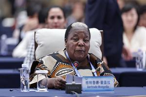 (251013) -- BEIJING, 13 octubre, 2025 (Xinhua) -- Gertrude Mongella, secretaria general de la Cuarta Conferencia Mundial sobre la Mujer, asiste a la reunión plenaria de la Conferencia de Líderes Mundiales sobre la Mujer, en Beijing, capital de China, el 13 de octubre de 2025. (Xinhua/Zhang Yuwei) (rtg) (ah) (ce)