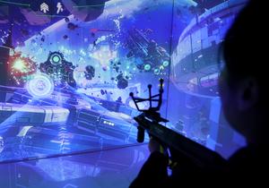 (250328) -- BEIJING, 28 marzo, 2025 (Xinhua) -- Un visitante experimenta un juego interactivo de realidad extendida durante la Convención de Ciencia Ficción de China 2025, en Beijing, capital de China, el 28 de marzo de 2025. La Convención de Ciencia Ficción de China 2025 comenzó en Beijing el viernes, con una ceremonia de apertura, foros, eventos de competencia, eventos de promoción de la industria y actividades masivas programadas. (Xinhua/Zhang Chenlin) (rtg) (ra) (vf)
