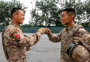 (250820) -- BEIJING, 20 agosto, 2025 (Xinhua) -- Participantes que tomarán parte en el próximo desfile militar del Día de la Victoria se animan mutuamente, en Beijing, capital de China, el 12 de agosto de 2025. Los participantes se preparan para el desfile militar del Día de la Victoria, programado para el 3 de septiembre en la Plaza de Tian'anmen, para conmemorar el 80º aniversario de la victoria en la Guerra de Resistencia del Pueblo Chino contra la Agresión Japonesa y la Guerra Antifascista Mundial. (Xinhua/Yin Gang) (da) (ce)