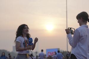 (250903) -- BEIJING, 3 septiembre, 2025 (Xinhua) -- Una reportera extranjera trabaja previo al gran acto de conmemoración por el 80º aniversario de la victoria en la Guerra de Resistencia del Pueblo Chino contra la Agresión Japonesa y la Guerra Mundial Antifascista, en Beijing, capital de China, el 3 de septiembre de 2025. (Xinhua/Hu Chao) (jg) (da)