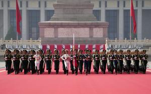 (250903) -- BEIJING, 3 septiembre, 2025 (Xinhua) -- Guardias de honor escoltan la bandera nacional china desde el Monumento a los Héroes del Pueblo hasta el asta de la bandera para una ceremonia de izamiento de bandera durante una gran concentración para conmemorar el 80° aniversario de la victoria en la Guerra de Resistencia del Pueblo Chino contra la Agresión Japonesa y la Guerra Mundial Antifascista, en Beijing, capital de China, el 3 de septiembre de 2025. (Xinhua/Du Yu) (vf) (ce)