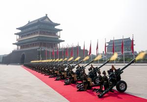 (250902) -- BEIJING, 2 septiembre, 2025 (Xinhua) -- Soldados disparan cañonazos de salva durante una gran concentración para conmemorar el 80° aniversario de la victoria en la Guerra de Resistencia del Pueblo Chino contra la Agresión Japonesa y la Guerra Mundial Antifascista, en Beijing, capital de China, el 3 de septiembre de 2025. (Xinhua/Jiang Wenyao) (vf) (ce)