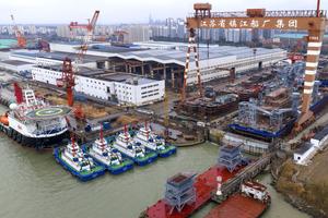 (260119) -- BEIJING, 19 enero, 2026 (Xinhua) -- Imagen tomada con un dron el 19 de enero de 2026 de trabajadores operando en un astillero, en Zhenjiang, en la provincia de Jiangsu, en el este de China. El producto interno bruto (PIB) de China creció un 5 por ciento interanual en 2025, cumpliendo con el objetivo anual de alrededor del 5 por ciento, según datos oficiales publicados el lunes. El PIB de China alcanzó un récord de 140,1879 billones de yuanes (unos 20,01 billones de dólares) el año pasado, resaltó el Buró Nacional de Estadísticas. (Xinhua/Xin Yi) (rtg) (ah) (vf)