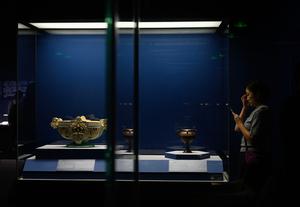 (250827) -- BEIJING, 27 agosto, 2025 (Xinhua) -- Una mujer visita una exposición con el tema "Donde se Encuentran las Civilizaciones: Colecciones de los Museos de los Estados Miembros de la Organización de Cooperación de Shanghai" en el Museo Nacional, en Beijing, capital de China, el 27 de agosto de 2025. La exposición, que presenta 220 reliquias y artefactos culturales seleccionados de 10 instituciones culturales de los estados miembros de la Organización de Cooperación de Shanghai, se inauguró aquí el miércoles. (Xinhua/Jin Liangkuai) (ah) (ra) (vf)