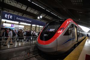 (250521) -- BEIJING, 21 mayo, 2025 (Xinhua) -- Imagen del 19 de enero de 2024 de un tren eléctrico de unidades múltiples, desarrollado por China Railway Rolling Stock Corporation (CRRC) Sifang Co., Ltd., preparándose para salir de la Estación Central, en Santiago, Chile. China aplicará una política de exención de visado a los ciudadanos de Brasil, Argentina, Chile, Perú y Uruguay, a modo de prueba, desde el 1 de junio de 2025 hasta el 31 de mayo de 2026, anunció el jueves pasado el Ministerio de Relaciones Exteriores chino. (Xinhua/Jorge Villegas) (ra) (ce)