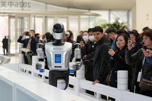 (260324) -- BEIJING, 24 marzo, 2026 (Xinhua) -- Un robot humanoide sirve bebidas en el Centro Internacional de Innovación de Zhongguancun, en Beijing, capital de China, el 24 de marzo de 2026. Bajo el lema "Integración total entre la innovación tecnológica y la industrial", el Foro Zhongguancun de este año se llevará a cabo en Beijing del 25 al 29 de marzo y se espera que la cifra de invitados participantes, procedentes de más de 100 países y regiones, sea superior a 1.000 y contará con alrededor de 100 eventos. (Xinhua/Ju Huanzong) (oa) (ah) (vf)