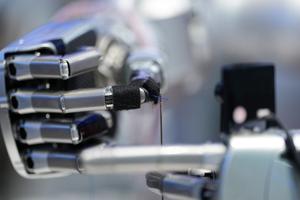 (260324) -- BEIJING, 24 marzo, 2026 (Xinhua) -- Un robot realiza una demostración de enhebrado en el Centro de Exposiciones de Zhongguancun, en Beijing, capital de China, el 24 de marzo de 2026. Bajo el lema "Integración total entre la innovación tecnológica y la industrial", el Foro Zhongguancun de este año se llevará a cabo en Beijing del 25 al 29 de marzo y se espera que la cifra de invitados participantes, procedentes de más de 100 países y regiones, sea superior a 1.000 y contará con alrededor de 100 eventos. (Xinhua/Ju Huanzong) (oa) (ah) (vf)