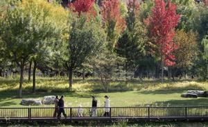 (251018) -- BEIJING, 18 octubre, 2025 (Xinhua) -- Personas portan ropa gruesa mientras caminan a lo largo de un canal, en el distrito de Tongzhou de Beijing, capital de China, el 18 de octubre de 2025. Afectada por un fuerte aire frío, Beijing se ve afectada por una ola de frío. (Xinhua/Li Xin) (oa) (da)