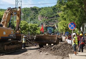 (250730) -- BEIJING, 30 julio, 2025 (Xinhua) -- Rescatistas retiran limo de una carretera, en el poblado de Liulimiao del distrito de Huairou, en Beijing, capital de China, el 30 de julio de 2025. Las recientes lluvias torrenciales han causado daños a casas y carreteras en múltiples ubicaciones en el distrito de Huairou. En el poblado de Liulimiao, una de las áreas más afectadas en Huairou, los equipos de rescate están evacuando ordenadamente a los residentes varados y despejando sitios dañados. (Xinhua/Zhang Chenlin) (jg) (da) (ce)