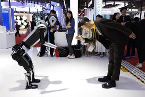 (250717) -- BEIJING, 17 julio, 2025 (Xinhua) -- Un periodista interactúa con un robot en el pabellón de la provincia de Guangdong durante la III Exposición Internacional de la Cadena de Suministro de China (CISCE, por sus siglas en inglés), en Beijing, capital de China, el 17 de julio de 2025. Celebrada del 16 al 20 de julio, la CISCE 2025 comenzó el miércoles en Beijing. (Xinhua/Jin Liwang) (rtg) (ra) Mahmoud Basal