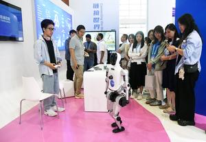 (250717) — BEIJING, 17 julio, 2025 (Xinhua) — Visitantes interactúan con un robot humanoide en la área de Cadena de Innovación de la III Exposición Internacional de la Cadena de Suministro de China (CISCE, por sus siglas en inglés), en Beijing, capital de China, el 17 de julio de 2025. Con el tema «Conectar el Mundo para un Futuro Compartido», la exposición, organizada por el Consejo Chino para la Promoción del Comercio Internacional, se inauguró el miércoles en Beijing. Celebrada del 16 al 20 de julio, la CISCE 2025 reunió a más de 650 empresas e instituciones de 75 países, regiones y organizaciones internacionales, junto con más de 500 de sus socios de oferta y demanda. (Xinhua/Ren Chao) (da) (ra) (vf)
