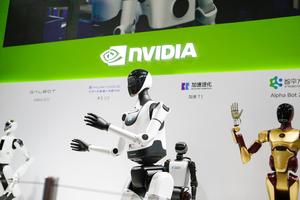 (250718) -- BEIJING, 18 julio, 2025 (Xinhua) -- Imagen del 17 de julio de 2025 de robots en el estand de Nvidia durante la III Exposición Internacional de la Cadena de Suministro de China (CISCE, por sus siglas en inglés), en Beijing, capital de China. Con el tema "Conectar el mundo para un futuro compartido", la CISCE 2025 se celebra del 16 al 20 de julio, reuniendo a más de 650 empresas e instituciones de 75 países, regiones y organizaciones internacionales. Los expositores extranjeros representaron el 32 por ciento del total, es decir 3 puntos porcentuales más que en la edición anterior. En el evento de este año también han participado más de 170 delegaciones de visitantes extranjeros, y más de 230 expositores han acudido por primera vez. (Xinhua/Ding Hongfa) (oa) (ra) (vf)