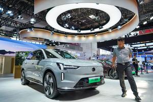 (250717) -- BEIJING, 17 julio, 2025 (Xinhua) -- Un visitante se informa sobre un vehículo en el estand de Volvo en el área de la Cadena de Vehículos Inteligentes de la III Exposición Internacional de la Cadena de Suministro de China (CISCE, por sus siglas en inglés), en Beijing, capital de China, el 17 de julio de 2025. Celebrada del 16 al 20 de julio, la CISCE 2025 comenzó el miércoles en Beijing. Una innovación clave de esta edición es la "Zona Debut", dedicada a los estrenos mundiales de nuevos productos, tecnologías y ecosistemas, presentando innovaciones revolucionarias que impulsan la colaboración industrial. (Xinhua/Wang Jingyi) (jg) (ah) (ce)